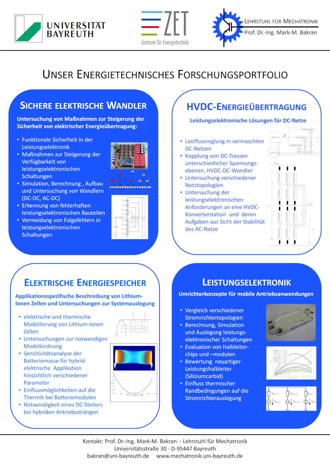 Die Forschung des Lehrstuhls konzentriert sich auf energietechnische und antriebstechnische Anwendungen der Mechatronik, wobei die Leistungselektronik die verbindende Rolle einnimmt. In der modernen Energiewandlung entspricht das dem Trend, dass ein immer größerer Anteil der Energie elektrisch ist und dabei wiederum die Leistungselektronik die zentrale Rolle des Energiewandlers einnimmt.